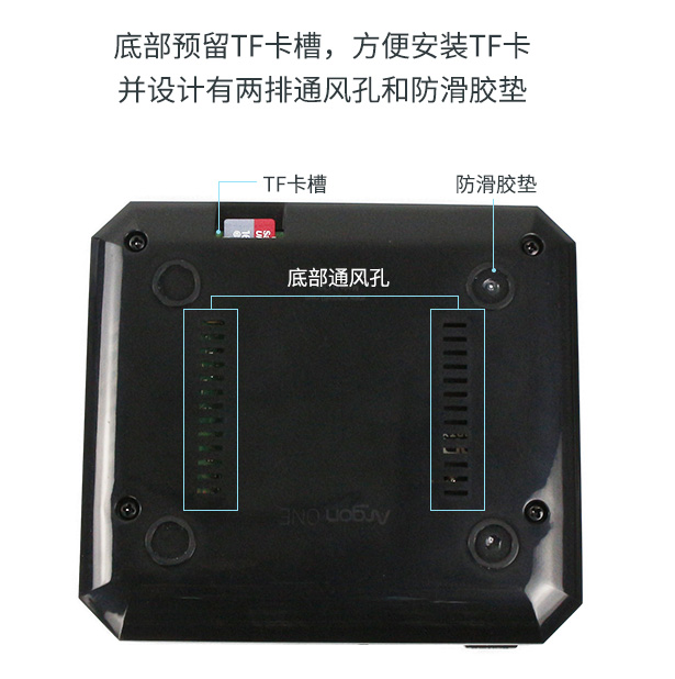 每一个孔位高度贴合主板,上下都预留了通风口,搭配外壳内部自带的风扇,可进一步解决树莓派4的发热问题,保证树莓派长期使用也不会过热。